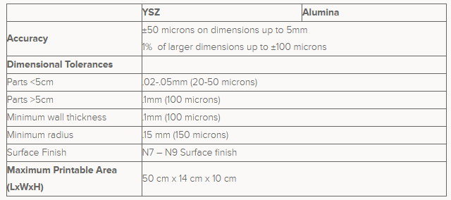 Marvel Medtech Advanced Manufacturing can provide AM / 3D printing of advanced ceramics for fine jewelry with the following specifications: