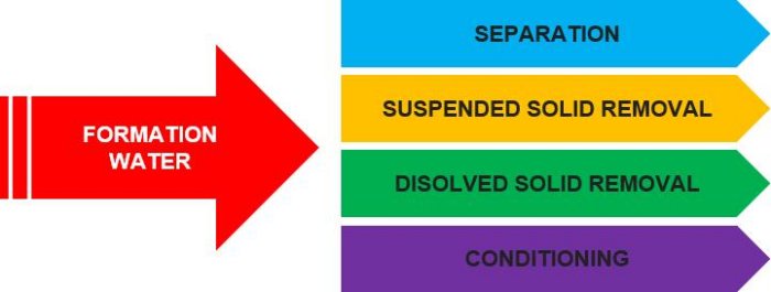 In general the most effective steps to achieve reusable water levels from formation water are: