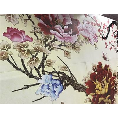 - Colorful flat background wall: is used a lot in the imitated jade and marble, its weather resistance can be improved by varnish-coating based on the procedure of sand-blasting and polishing before printing color.