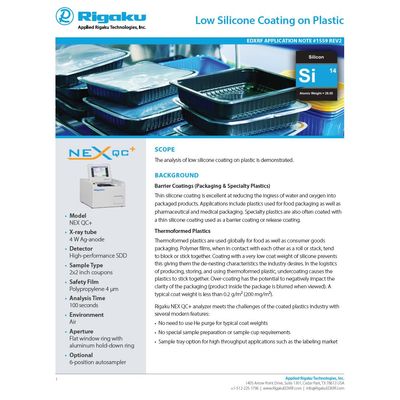 Polymers and plastics are materials composed of repeating hydrocarbon structural units, typically connected by covalent chemical bonds. Today, polymers can be found everywhere, with a range of applications far exceeding that of any other traditional material, from packaging materials, adhesives, foams, plastic containers, textiles, fibers, and construction parts in airplanes and automobiles. The list of polymers includes: Rubber, Bakelite, Neoprene, Polypropylene (PP), Polystyrene (PS), High impact polystyrene (HIPS), Acrylonitrile butadiene styrene (ABS), Polyethylene terephthalate (PET), Polyester (PES), Polyamides – Nylon (PA), Polyvinyl chloride (PVC), Polyurethanes (PU), Polycarbonate (PC), Polyvinylidene chloride (PVDC), Polyethylene (PE), Polymethyl methacrylate (PMMA), Polytetrafluoroethylene (PTFE), Polyetheretherketone (PEEK), Polyetherimide (PEI), Phenolics (PF), Urea-formaldehyde (UF), Melamine formaldehyde (MF), Polylactic acid (PLA), Silicone, and many more.EDXRF, a primary type of X-ray fluorescence (XRF), provides quick, multi-element analysis in a wide range of matrices, even in the most challenging sample types. EDXRF systems are easy to use and offer a low cost of ownership. These advantages make Rigaku EDXRF products a reliable choice for many applications.