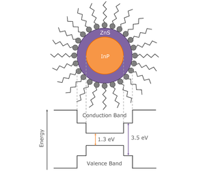 Semiconductor quantum dots (QDs) have unique tuneable photoluminescence properties which lend them to a range of important technological applications including solid-state lighting, displays, photovoltaics, and biomedical imaging. Indium phosphide (InP) QSemiconductor quantum dots (QDs) have unique tuneable photoluminescence properties which lend them to a range of important technological applications including solid-state lighting, displays, photovoltaics, and biomedical imaging. Indium phosphide quantum dots have attracted significant interest as an environmentally friendly and non-toxic alternative to traditional heavy metal based QDs containing cadmium and lead.