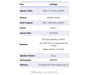 The SCION Instruments 8X00 GC-platform provides a robust and complete solution for the simulated distillation of distillates and lubricating base oils, following standardized method EN15199-1. The obtained results demonstrate that this method and the SCION Instruments GC system configuration performs excellent and meets all the specifications mentioned in EN15199-1.