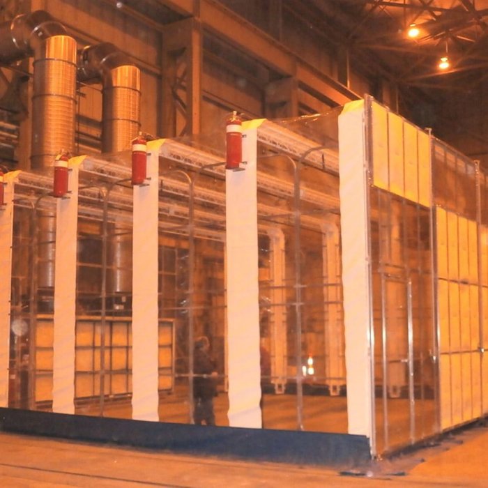 - Sub-assembly clean rooms with vented or non-vented filtration coupled with DuroRoom™ retractable enclosures scalable to the size of large workpieces, suitable for sanding, grinding, coating, and repairs