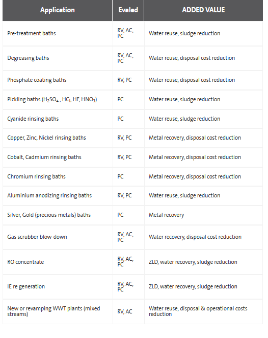 - Water from covering and surface finishing processes: waters used for the composition of the various treatment and covering applications, as the exhausted baths, those used for the anodizing, galvanic processes etc.