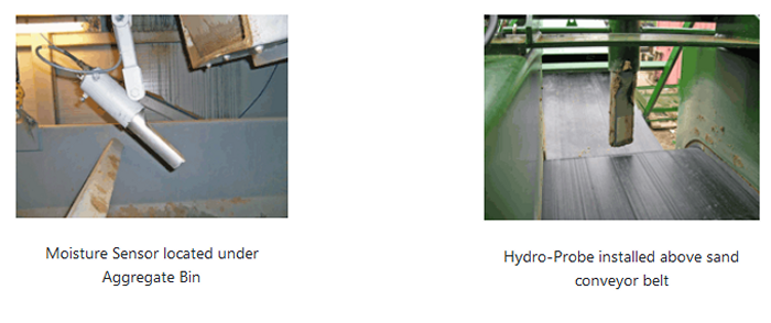 Moisture sensors can measure moisture levels in materials being discharged from bins, on conveyor belts or within vibratory feeders. The sensors are placed directly in the flow of the material, and take 25 measurements per second as the sand or aggregate flows over the ceramic measurement surface. These measurements are then transmitted to the plant control system in real time. This allows the manufacturer to accurately control water addition during processing and ensures that batches are of a consistent quality, while reducing the level of wasted material.