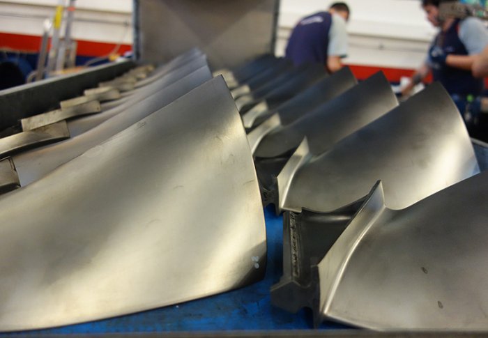 Various different jet engines and auxiliary power units (APUs) are refurbished in the Engine Shop. The jet engines and APUs need to be disassembled from one another and broken down into their individual parts. The soiled individual parts are then cleaned with alkaline cleaning agents in ultrasonic baths.