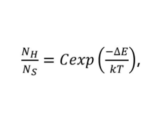 Where Ni is the population in level i, ΔE is the spacing between the levels, k is Boltzmann’s constant and C is a constant depending on degeneracies.
