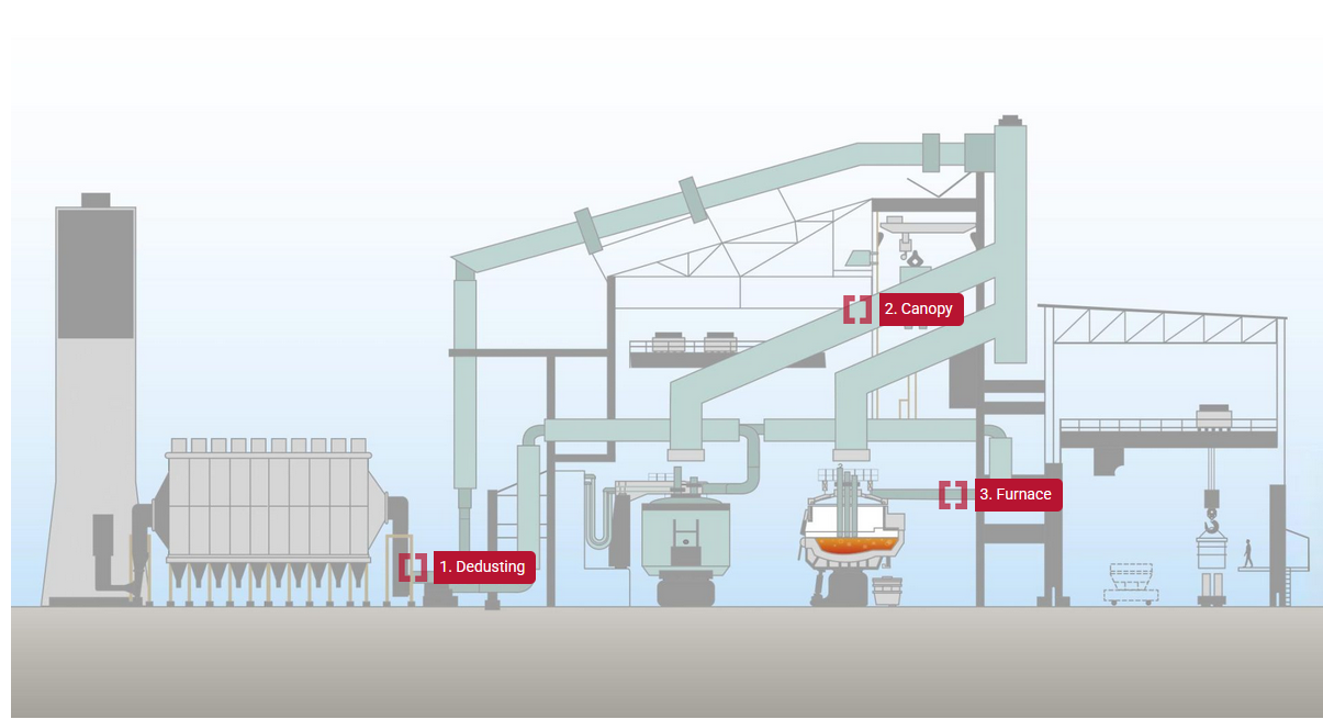 Primary and secondary dedusting, BOF converters, EAF fumes, we measure all flows, no matter how contaminated, from ambient temperatures up to 2000°C (4000°f)!