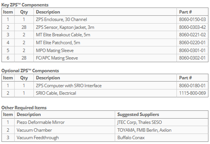 ZPS sensors have been exposed to x-ray radiation have shown no signs of performance degradation to date. ZYGO can provide sensors with Kapton jacketing for x-ray resistance and vacuum compatibility down to 10-9 torr (10-7 Pa).