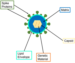 Ethanol kills cells by a process called denaturation, the alcohol molecules break down the proteins in the cell membrane. More specifically, the virus which causes COVID-19 (SARS-CoV-2) is an enveloped virus. The viral envelope is the outermost layer of the virus, it protects the genetic material when travelling between host cells. Without the protection of their membrane cells will dehydrate, and quickly die. Figure 1 shows the general structure of an enveloped virus, the lipid envelope and spike proteins are the areas ethanol interacts with and breaks down.
