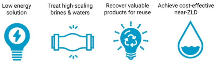 - Greater than 70% energy and OPEX savings compared to evaporators