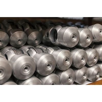 Aluminium parts forged by pressing heated blanks. Forging is used in manufacturing processes to create aluminium of the desired shape, strength, and performance properties by applying high pressures – through pressing, pounding or squeezing.