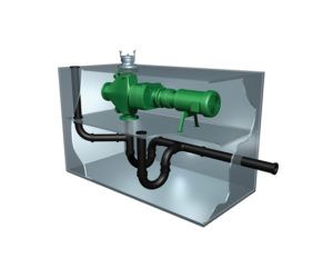 The airport receiving station allows lavatory waste trucks to quickly dump their loads into an inlet pipe that leads to a Muffin Monster grinder. The grinder handles all of the plastics, textiles, wipes and other solids that may be in the vacuum toilet or blue water waste. Ground material is then flushed into the local sewer system without clogging any pipes, pumps or valves.