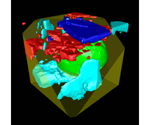 3D Raman Image of a pollen in crystalline honey. Data were acquired and processed with the new WITec Suite software. Image parameters: 150 x 150 x 50 pixels = 1,125,000 Raman spectra, scan area: 50 µm x 50 µm x 50µm, integration time per spectrum: 12.2 milliseconds, total acquisition time: 3h 50 min.