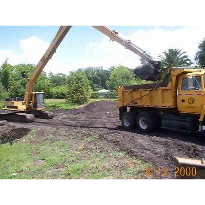 Mud/ Sediment Removal: APS Silt StopĀ® Powders can be used for mud thickening to remove unmanagable muck. Highly saturated soils can be messy and difficult to remove without spilling or dripping. Apply the soil-specific anionic polymer evenly over the surface of the sediment. Using the bucket of the removal equipment, stir it into the soil to a maximum of 3 feet deep. Allow the polymer to react with the soil for 10-20 minutes, the more mixing that is done, the less time this will take. The polymer will cause the sediment to thicken, allowing for easier removal.