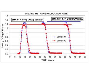 In anaerobic tests, the active biomass is indicated by the maximum specific methane production (SMP) rate in the presence of high concentrations of acetic acid, ethanol or other organic substrates.