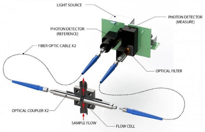 The Chlorine Analyzer is designed for continuous, real-time monitoring of hypochlorite. The all-inclusive Chlorine Analyzer comes preassembled in a waterproof NEMA4X enclosure with a dedicated sample flow cell outside the enclosure. The analyzer includes a PX2+ photometer with two fiber optic cables and a flow cell with two optical interface couplers.