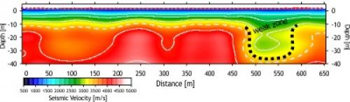 Weak zones in the subsurface are often caused by dissolution and washing out processes, weathering or geological faults. Weak zones lead to a reduction of the rock strength and have often an increased hydraulic permeability.Seismic methods are very sensitive to changes of rock strength and are well suited to explore weakened material or to investigate changed material properties of the subsurface.