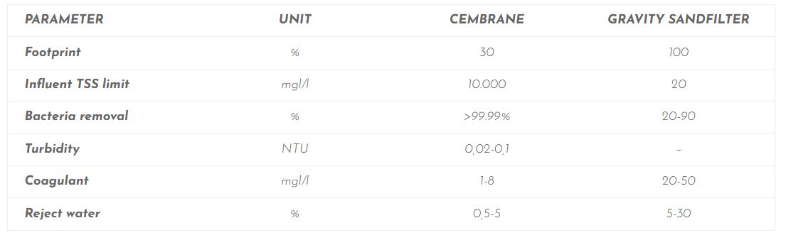 Below table presents an overview of the key differences between Cembrane’s SiC membrane modules and traditional sand filtration