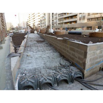 The Atlantis System makes it possible to quickly create ramps for accessing underground structures, with considerable savings in material use. In fact, instead of using materials such as sand, gravel or concrete, it is possible to create a foundation for the ramp that has the same height of the adjacent structure (parking area) and create a space with an inclined vehicle accessible slab on the top. The Atlantis System can also be used for curved ramps.
