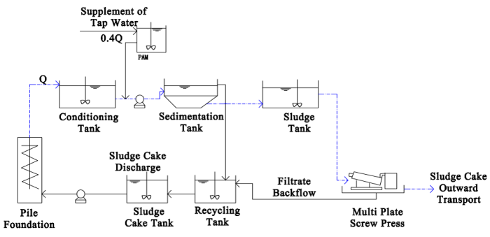 Building slurry has two characteristics. First, a large amount of slurry can be produced in a short time once the construction machinery is started. Second, it is difficult to store. There is no big slurry tank on site. So if you discharge it directly, it will pollute the environment. And the car transportation costs are high, so local processing is the best option. In order to solve the existing problems of building slurry, we have developed and innovated independently. Taking the special multi plate screw press for pile foundation slurry as the core equipment, we have systematically integrated the slurry pretreatment, adjustment, transportation and external transportation equipment technology, and then put forward the system solution of the pile foundation slurry dewatering treatment. This solution can solve the existing problems in the process of pile foundation slurry treatment and reduce customers’ investment and operating costs. We have accumulated a large number of practical operation parameters of slurry treatment in various construction sites, and further launched the integrated system of vehicular mobile slurry dewatering.