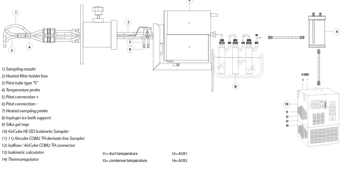 The heated sonde might be used with a kit of accessories and increasing the number of the impingers positioned in the refrigerated tank, or sampling metals in emission according to method EPA 29, 26° and EN-14385.