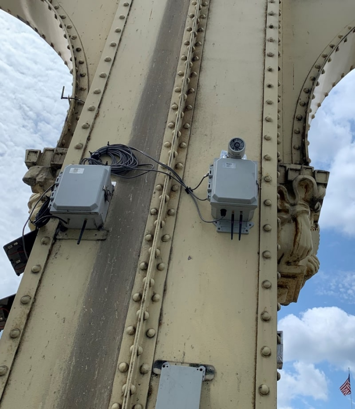 Figure below shows a picture of a practical Resensys SHM system,which can be used for monitoring instances of overweight loads on bridges.