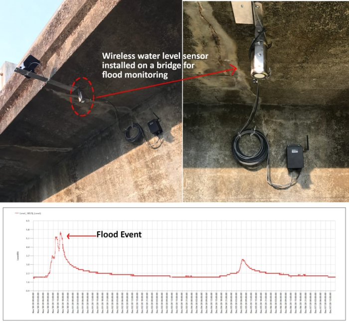 This system reduces installation cost and time for owners / authorities to get the realtime data they need for scour critical bridges monitoring. A unique capability of Resensys wireless gauges (Water Level Meter, and Tilt Sensor) is to measure at very high precision, while providing ultra-low power usage to allow short and long term monitoring. The measurements can be combined with Wireless Solar Powered Camera corresponding visual feeds to get complete condition awareness and remote monitoring on scour critical bridges, and is particularly useful to allow quick assessment of conditions after severe floods.