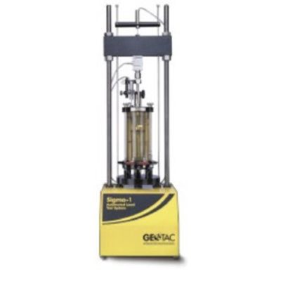 The soil sample – typically cylindrical in shape – is isolated inside a transparent chamber, located at the center of the machine. In a clever twist to this innovation design, a steady pressure is applied by a fluid that surrounds the circumference of the sample, separated from the fluid by a rubber diaphragm.