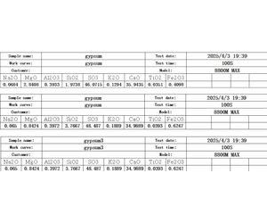 The following is the test report of using the X - ray Fluorescence Spectrometer EDX8800M Max for the rapid and accurate quantification of gypsum components: