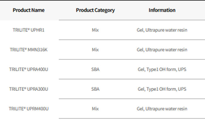 - TRILITE® ion exchange resins for ultrapure water feature