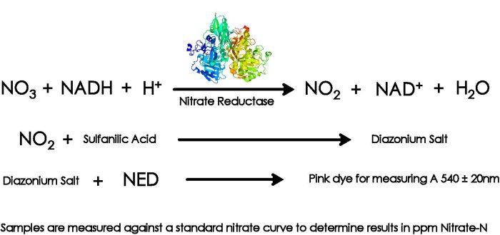 Enzymes target their substrate. This makes them an excellent reagent for selecting only a certain compound, even in a complex sample. Nitrate Reductase only targets Nitrate in a solution.