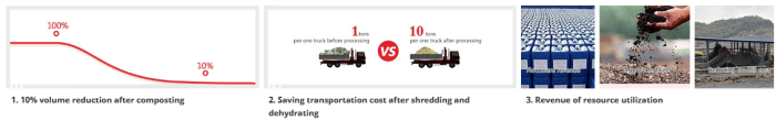 Harden has introduced German technology to develop kitchen waste processing system which mainly contains spiral feeding, shredding, dehydrating, spiral discharging, fermentation, composting, etc. The volume of kitchen waste can be reduced by 5-10% after the material processed by shredding pretreatment and fermentation. Intelligent dynamic control system of spiral dehydration system developed by Harden can adjust the pressure according to the handling requirement, stabilizes the system pressure and guarantees the dehydration rate of 80%.