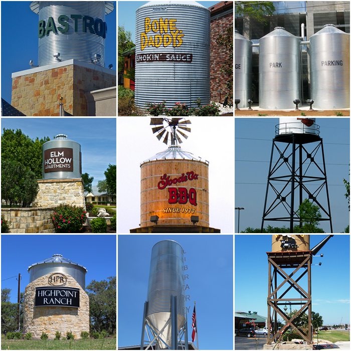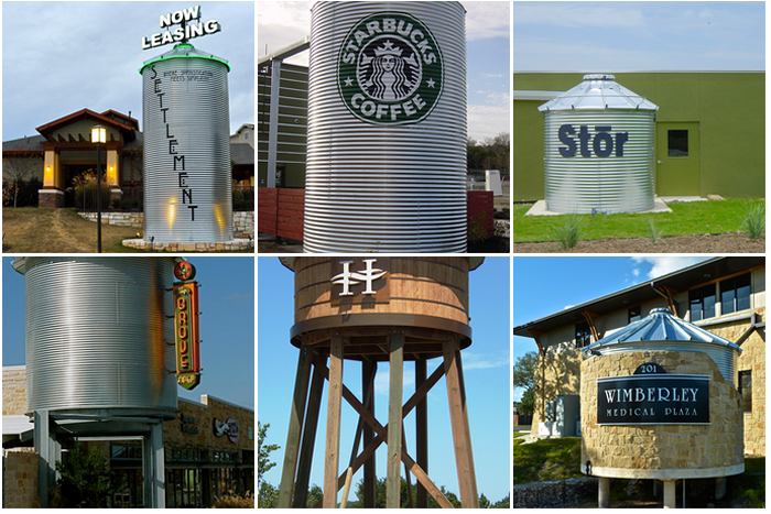 CorGal and TimberTank water storage tanks are often used as landmarks in architecture for advertising and promotional purposes. Many businesses, restaurants, neighborhoods, even homeowners have been utilizing tanks to promote their name or create a unique and welcoming entry.