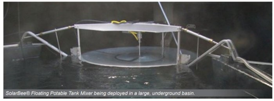 Solution: Two (2) SolarBee Floating Potable Tank Mixers were deployed March 2004, one (1) in each basin of the reservoir.