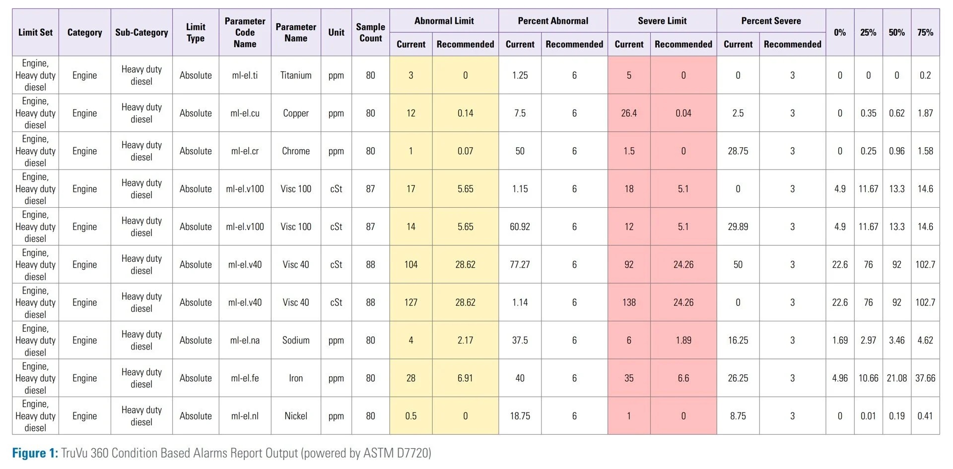 To overcome these challenges associated with alarm limits, TruVu 360 now offers a Condition Based Alarm feature based on statistical evaluation of alarm limits using ASTM D7720 Standard Guide for Statistically Evaluating Measurand Alarm Limits when Using Oil Analysis to Monitor Equipment and Oil for Fitness and Contamination.