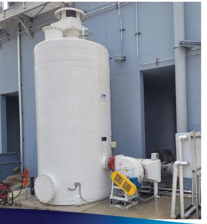 releases H 2 S gas in the air, which causes a very distinct and unpleasant odor. The facility needed a solution to remove the odorous gas from the air because it was receiving consistent odor complaints from the surrounding neighborhood.