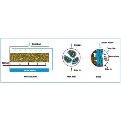 The basic principle of a biotrickling odor removal system is as follows: The exhaust gas comes into contact with the biofilm attached to the packing material as it passes through the packing layer. The microorganisms in the biofilm degrade the organic pollutants in the exhaust gas into harmless carbon dioxide and water. Key components of a biotrickling odor removal system include: