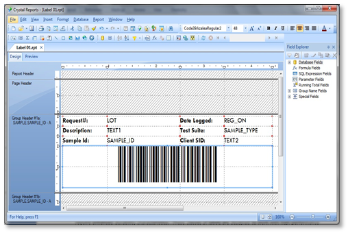Any field within Confience eLIMS can be output onto a report or label as a barcode, and any value can be read into Confience eLIMS by scanning its barcode into the associated field.