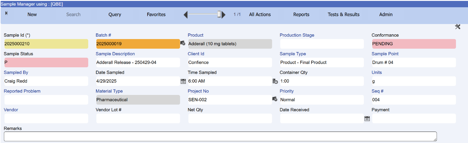 Of course, retrieval of data is not limited to Sample Id, but this is the most frequently used interaction since a LIMS is ‘sample-centric.’