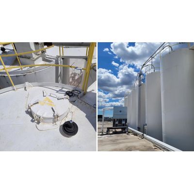 Proper installation was the first priority to ensure good operation at the site. ABM's swivel Aiming Mount accessory was used to mount the sensor inside the tank. A conductive flange and installation inside the tank shielded the sensor and eliminated the effects of RF interference.
