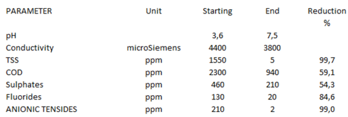 - Typical problems in wastewater: High Fluorides, Sulphates, COD