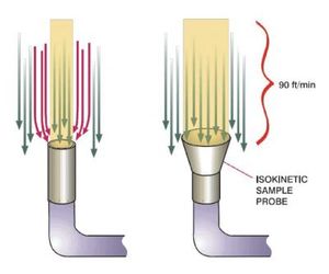 If the velocities differ, then either a positive or negative sample collection error occurs. An isokinetic sample error increases with particle size, but is not of great concern for particles smaller than 1–2 μm.