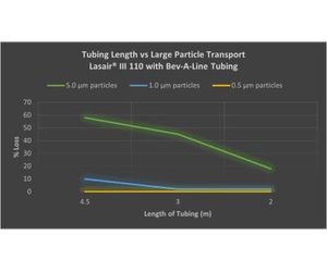 When portable particle counters (such as the Lasair III 110) are used, the flow rate in the tubing is significantly reduced; therefore, the maximum permissible distance is also reduced. The above figure shows a similar pattern to that for manifold sampling, but over much shorter distances.