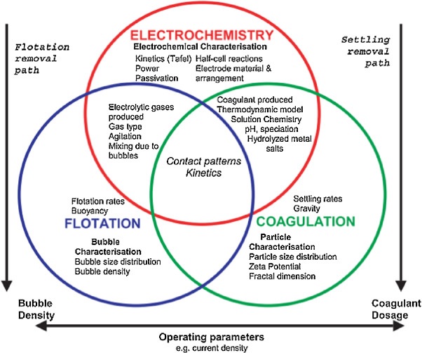 In fact, research suggests that electrocoagulation “under the combined effects of aluminum and iron electrodes has elicited significant impact for the removal of organic matter, phenol, and color removal by 59%–76%, 70%–91%, and 70%–95%, respectively.”