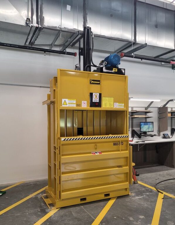 Vertical Balers – These are created with a vertical, space saving design and operate in a downstroke motion. Vertical Balers range in size from 30″ to 72″ and can be manually fed or conveyor fed, depending on volume and type of product being recycled.