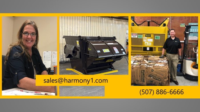 You are an expert in your business. That’s why you are successful. Harmony has been an expert at designing, manufacturing, selling, and servicing recycling balers for decades. We can work with you to help you determine what kind of commercial recycling solution is right for your business. We offer free quotes, no-obligation site reviews, an industry leading warranty, preventive maintenance plans, and quality customer service.