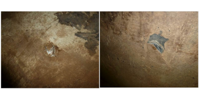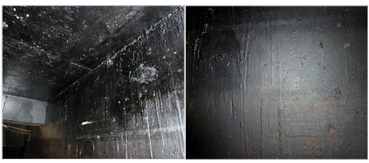 Bitumen paint had also been applied to some areas of the walls and soffits of the tank. The paint had started to deteriorate due to low film build and subsequent de-bonding: