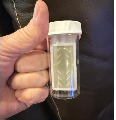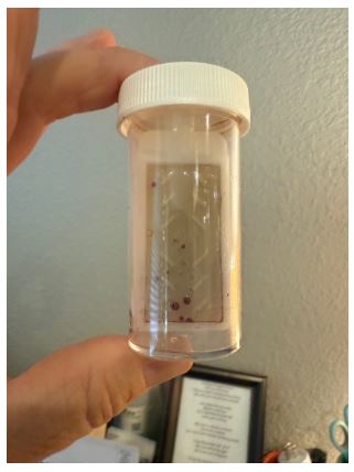 Fig 6. (Right) Photo of a dip-slide sample depicting the heavy bacterial colonization within 3 weeks of using sodium hvDochlorite as a stand-alone treatment.