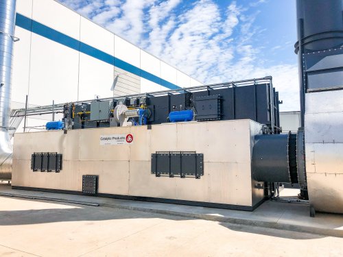 Catalytic Products International (CPI) recently completed the installation of a new 33,000 SCFM Regenerative Thermal Oxidizer (RTO) at a Midwest USA aerosol can manufacturer for the abatement of Volatile Organic Compounds (VOCs) generated during the metal decorating process.